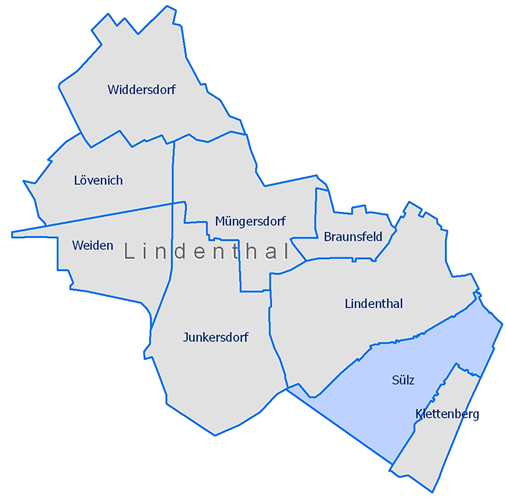 | + | Lage des Stadtteils [[Sülz]] im [[Stadtbezirk Lindenthal]]. | ||