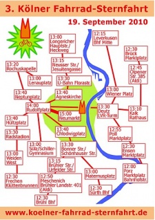 Die 3. Kölner Fahrrad Sternfahrt findet am 19. September 2010 statt.