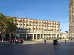 Von dort kurzer Fußweg über die Treppe oder Lift auf die Domplatte und rechts am Hauptportal vorbei um die Ecke.